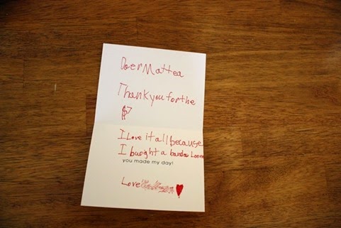After H’s birthday, we had a little thank-you-note-writing training session. If he’s old enough to write, he’s old enough to write thank you cards!