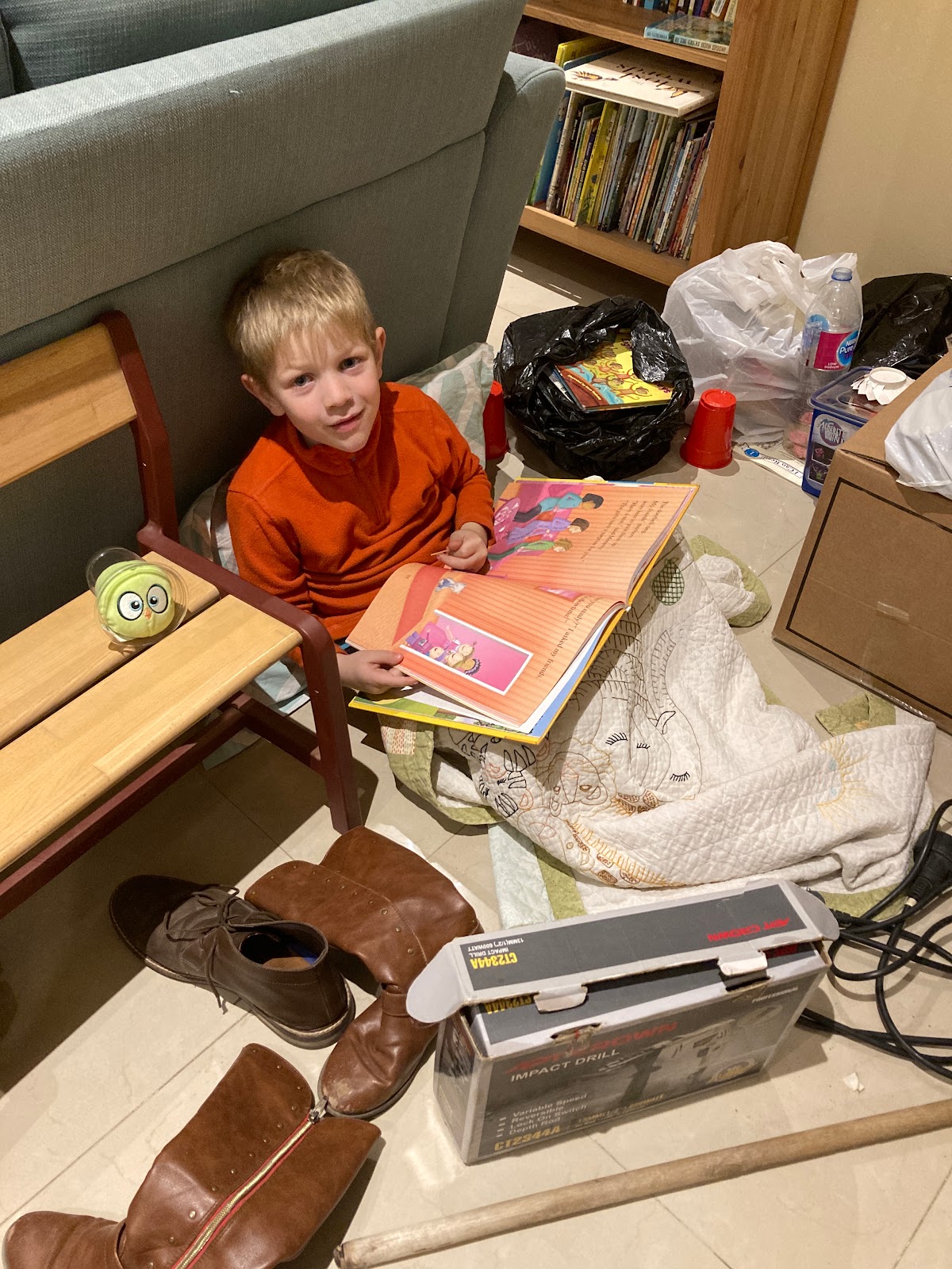 He’s been here for a least an hour. Music on and a Lego magazine.